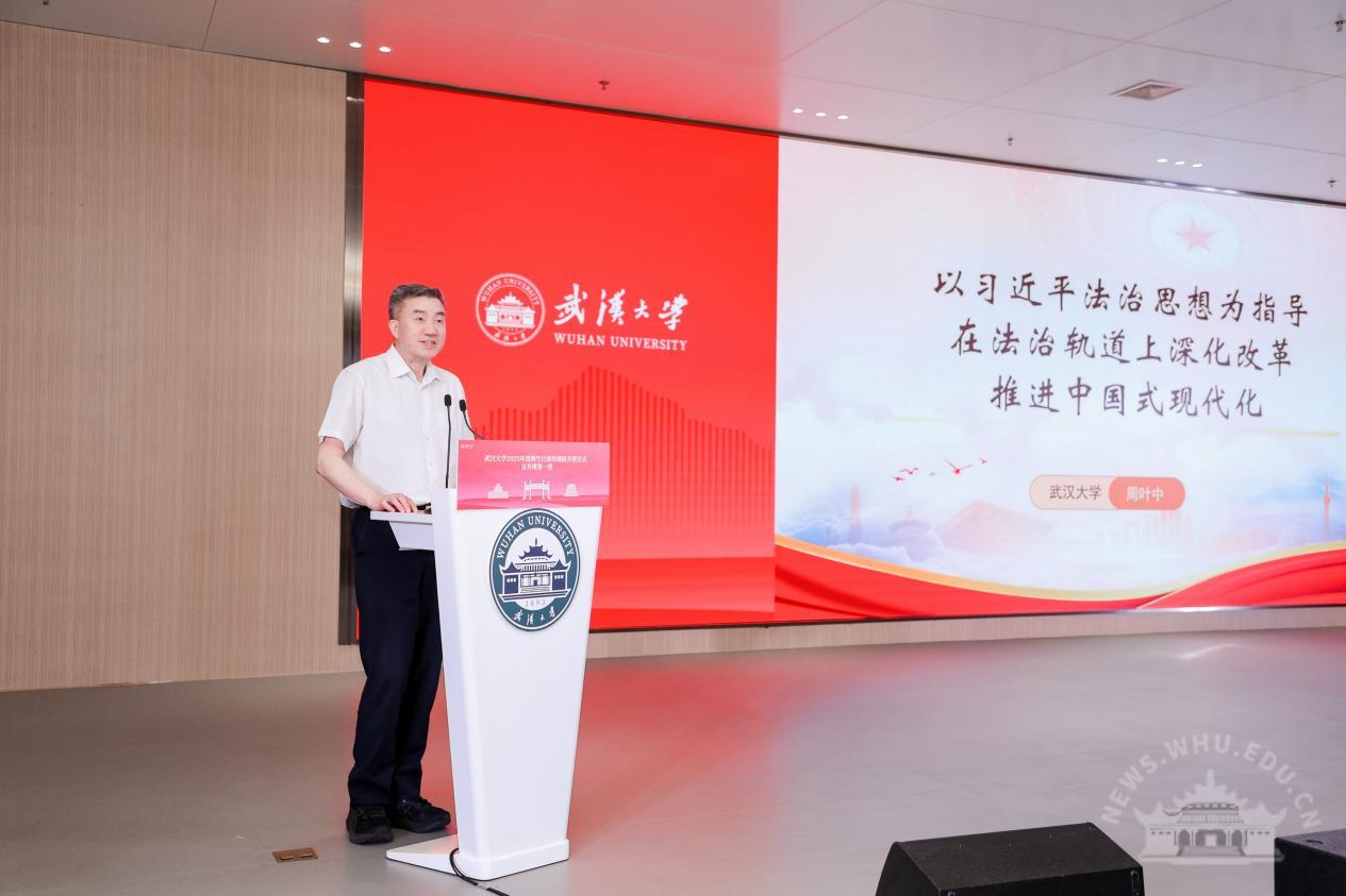 在开班仪式后,周叶中以“以法治思想为指导,在法治轨道上深化改革推进中国式现代化”为题讲授了课。他从法治思想是深化改革和推进中国式现代化的行动指南、系统把握法治思想内容、以法治思想为指导完善保障改革和中国式现代化的法治体系三个方面展开讲解,深入阐释了法治思想的深刻内涵和时代要义,并勉励选调生们要以法治思想为指引,牢固树立规矩意识和法治思维,以人民为中心依法行政,不断提升自身能力,展现更大作为。