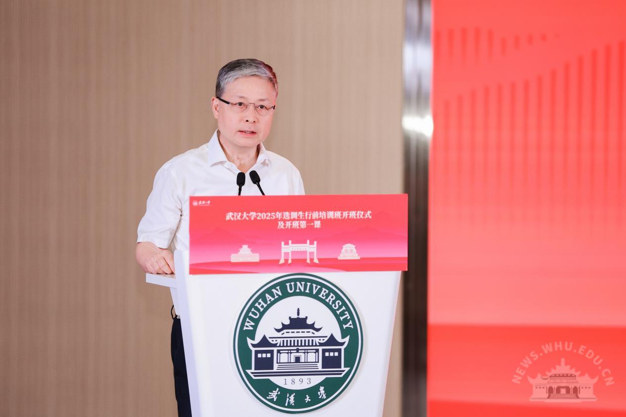 新闻网讯(通讯员赵一君)6月5日,武汉大学2025年选调生行前培训班开班仪式及开班课举行。校党委书记黄泰岩出席仪式并讲话,人文社科资深教授周叶中讲授课,学校大学生就业创业工作领导小组各成员单位负责人和相关培养单位负责人代表出席仪式。仪式由校党委常委、组织部部长姜星莉主持。